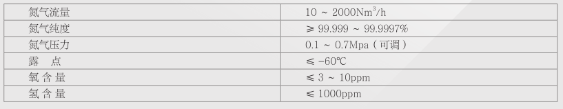 注:以上数据以 0.8Mpa(G),99.5% 原料氮气,环境温度 20℃ ,0 米标高和 80% 相对湿度为设计基准。