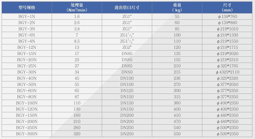 工作原理及产品特点 / Operating Principles and Product Characteristics高效除油器由上、下筒体、中间托盘、螺旋分离器、预过滤组件、精过滤组件、仪表及排污组件等组成。含有大量悬浮微粒、水及油的压缩空气首先进入下筒体,经螺旋分离使液态油、水沉积在底部,经排污组件排出,而气流进入预过滤组件,除去较大的固态、液态微粒:最后进入除油器的核心元件,精密滤芯,气体通过组合滤订的拦截、碰撞、扩散、重力沉降等效应,使微小的油、水气容胶粒子在穿过滤订的过程中被捕集,从而获得洁净(无油、无水、无尘的压缩空气高效除油器科学的采取集螺旋分离,预过滤和凝聚式精密过滤三级净化于一体,能高效除水,除油、除尘,使压缩空气净化工艺流程得以缩短。其过滤精度可达0,1um,残余油份含量可小于 0,1Ppm,使气源净化质量得到可靠的保证。该系列产品具有结构紧凑,效率高,使用寿命长,运行成本低,安装方便,适用于任何空气压缩机。